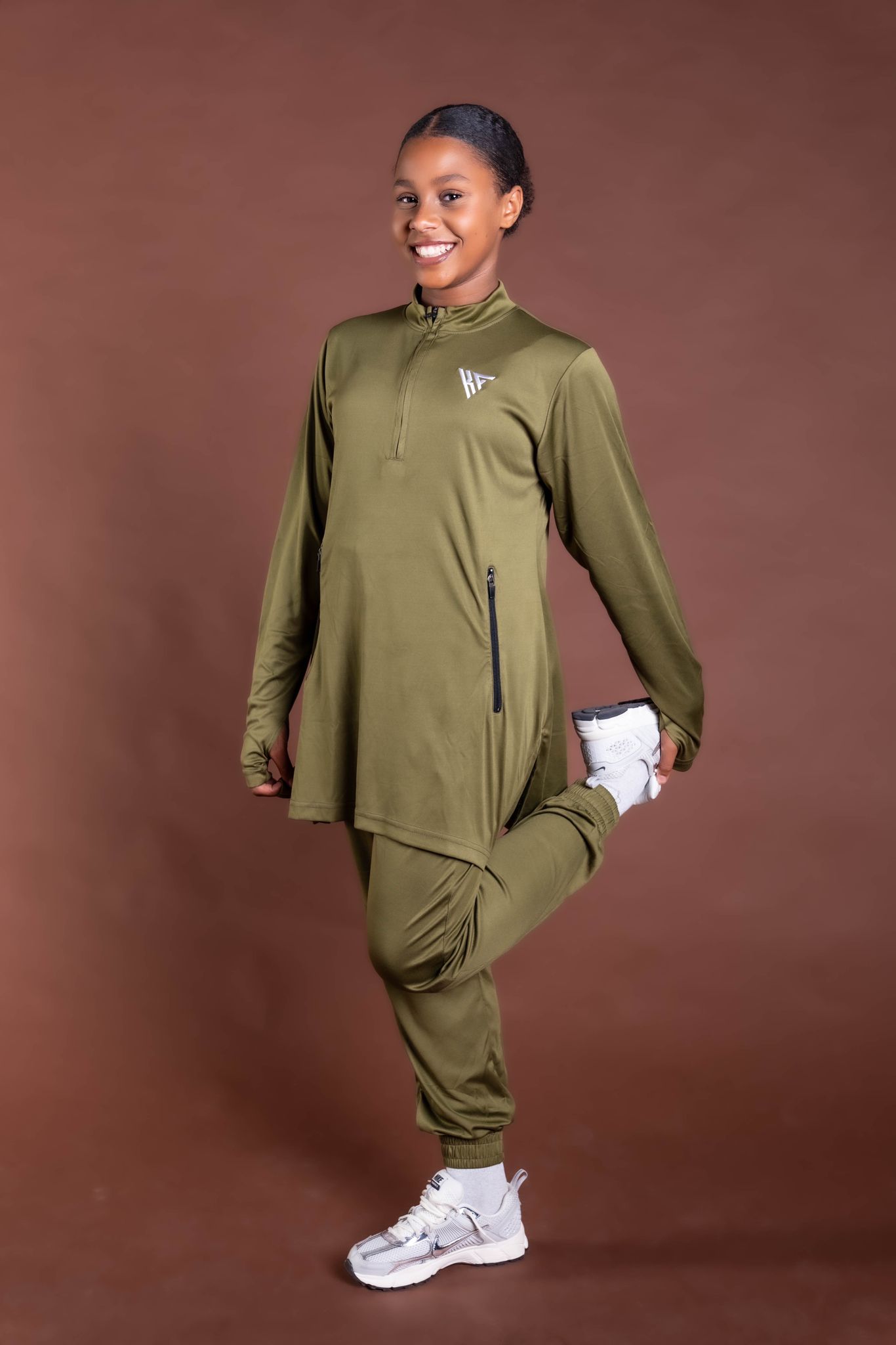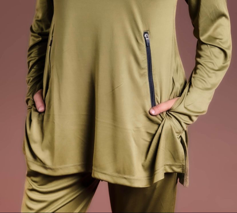 Pensé pour les femmes en mouvement, cet ensemble allie style minimaliste, technicité et couvrance moderne, sans compromis sur le confort.